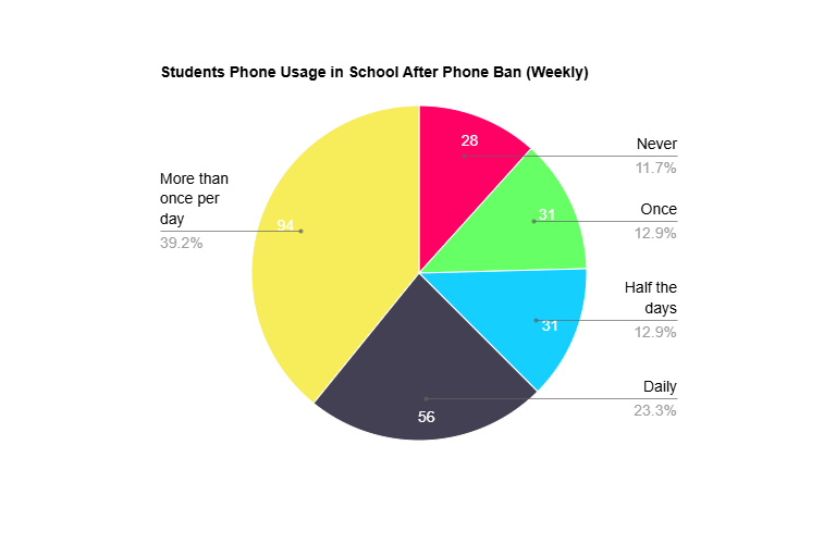 However, this poll may not truly represent the amount of students who use their phones frequently in schools, as many were hesitant to truthfully answer in fear of getting in trouble.